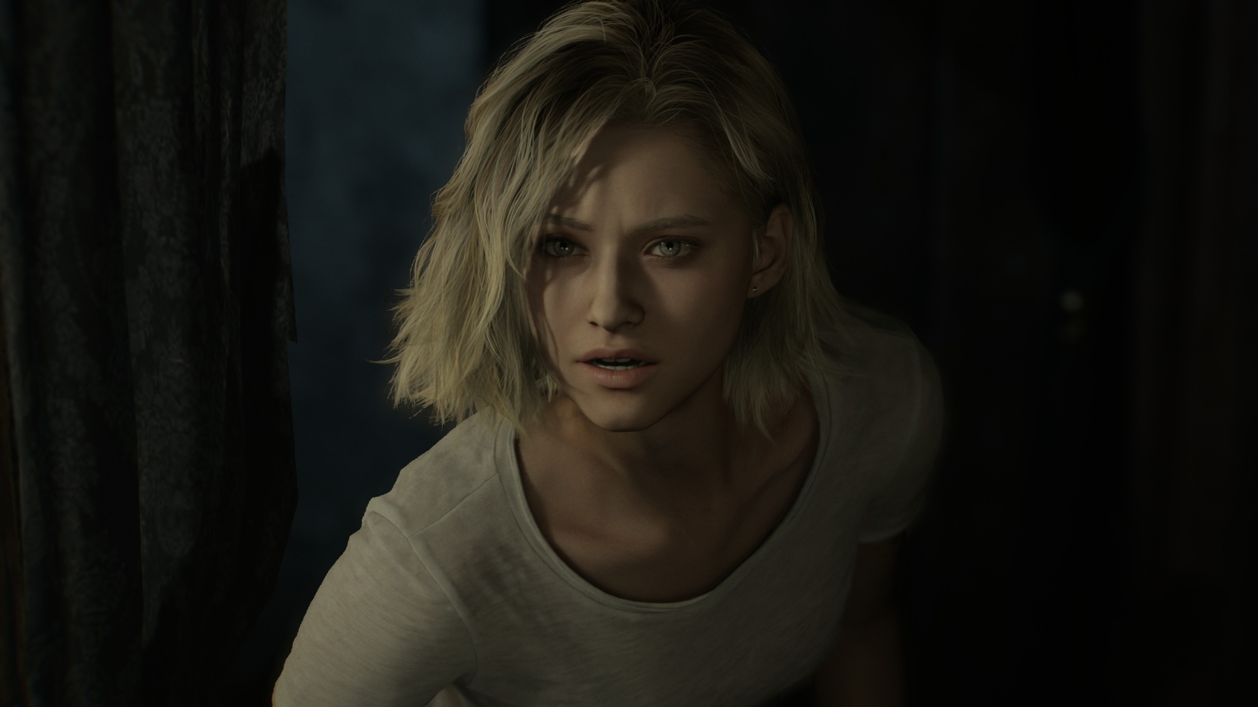 Las sombras son profundas y naturales. La luz rebota de forma realista. En las partes de Grace, la oscuridad se siente pesada, casi física. Un pasillo mal iluminado cambia por completo la sensación del lugar. En las secciones de Leon, las luces dinámicas, las chispas y los destellos de disparos generan un impacto visual brutal.